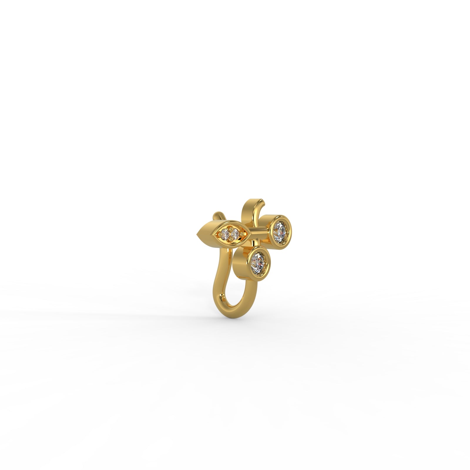 Crafted from pure 92.5 sterling silver, this elegant 3 stone leaf nose pin adds a hint of timeless charm to your look. Its finely detailed design — featuring minimalist embedded stones— makes it perfect for both traditional and contemporary styles. Lightweight, skin-friendly, and comfortable for all-day wear, this piece brings subtle sophistication to every outfit.