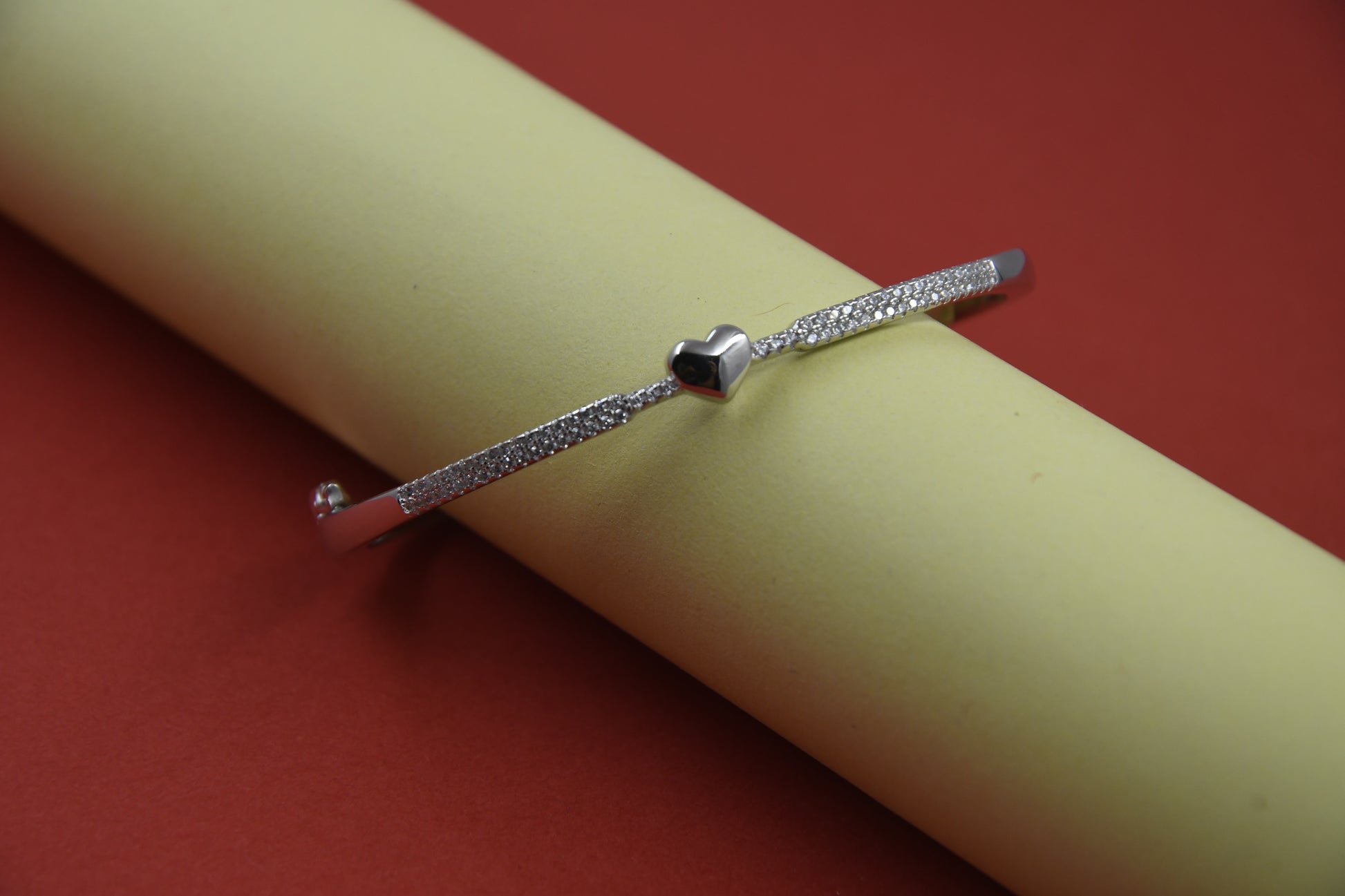 Crafted in premium 92.5 pure silver, the Heart Kada Bracelet brings together elegance and everyday wearability. Its delicate design is highlighted with shimmering zircon stones, adding a refined sparkle without being overwhelming. Lightweight, minimal, and timeless—this bracelet is perfect for daily styling, festive looks, or gifting.