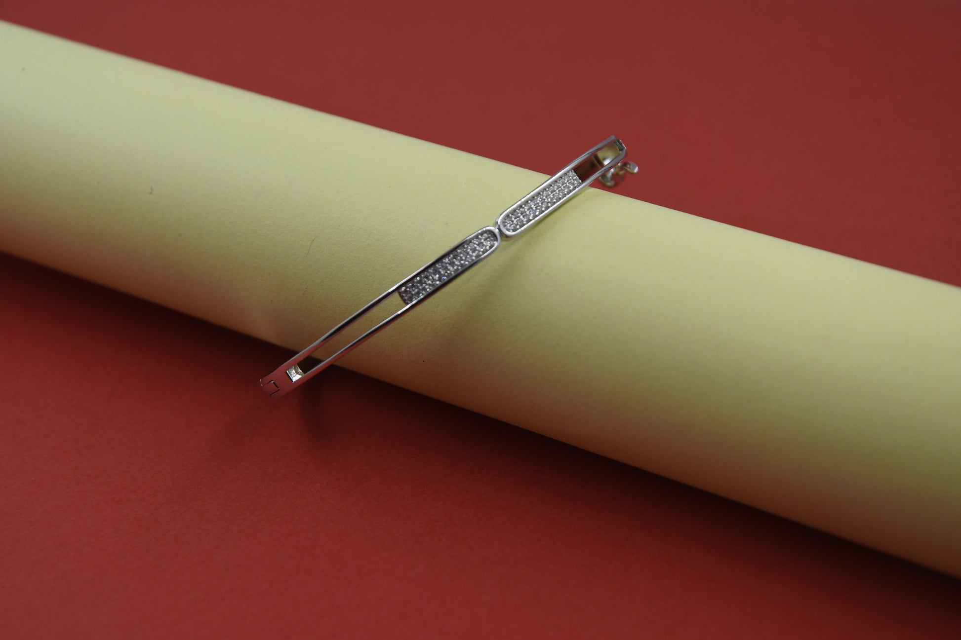 Crafted in premium 92.5 pure silver, the Double Oval Kada Bracelet brings together elegance and everyday wearability. Its delicate design is highlighted with shimmering zircon stones, adding a refined sparkle without being overwhelming. Lightweight, minimal, and timeless—this bracelet is perfect for daily styling, festive looks, or gifting.