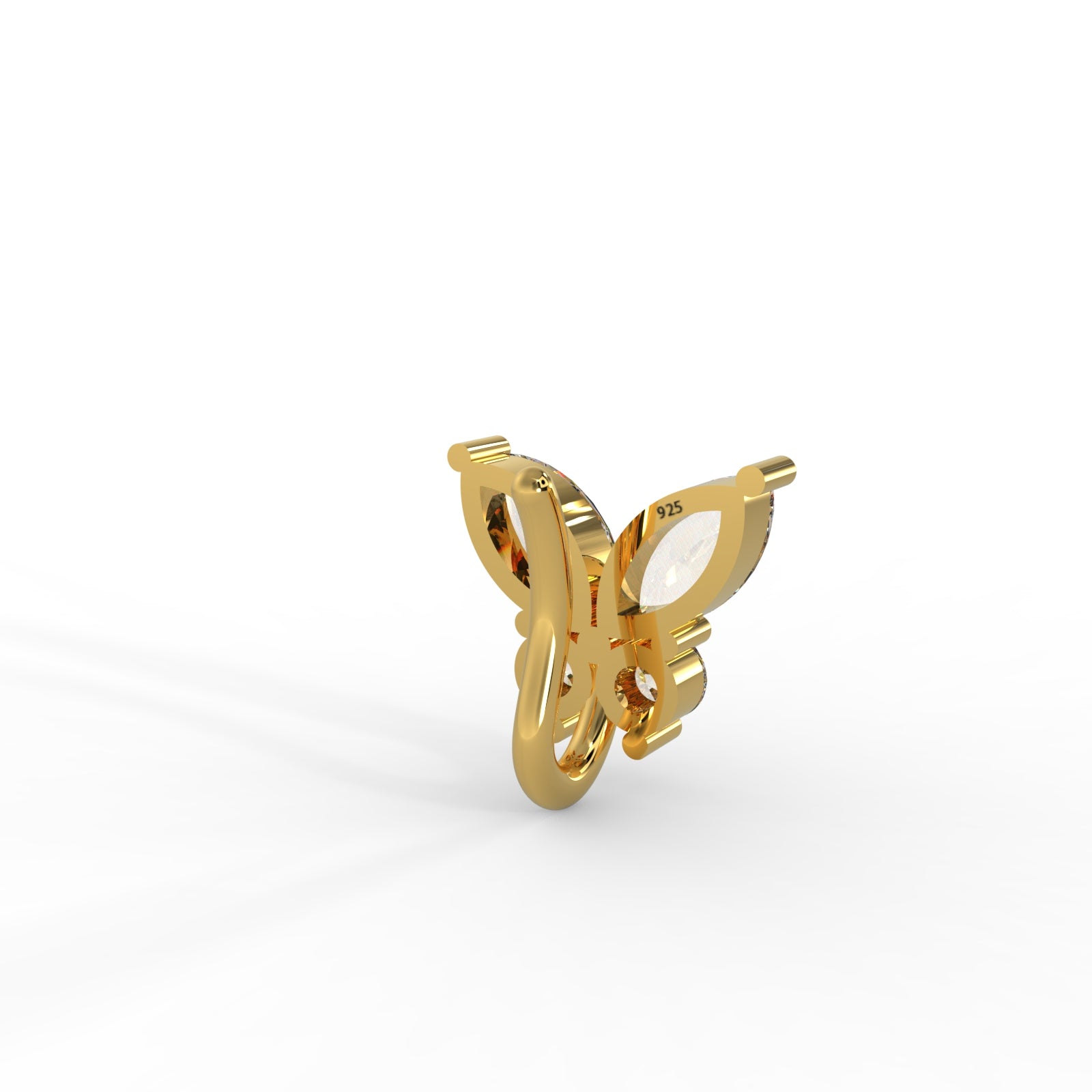 Crafted from pure 92.5 sterling silver, this elegant Butterfly stone nose pin adds a hint of timeless charm to your look. Its finely detailed design — featuring minimalist embedded stones— makes it perfect for both traditional and contemporary styles. Lightweight, skin-friendly, and comfortable for all-day wear, this piece brings subtle sophistication to every outfit.