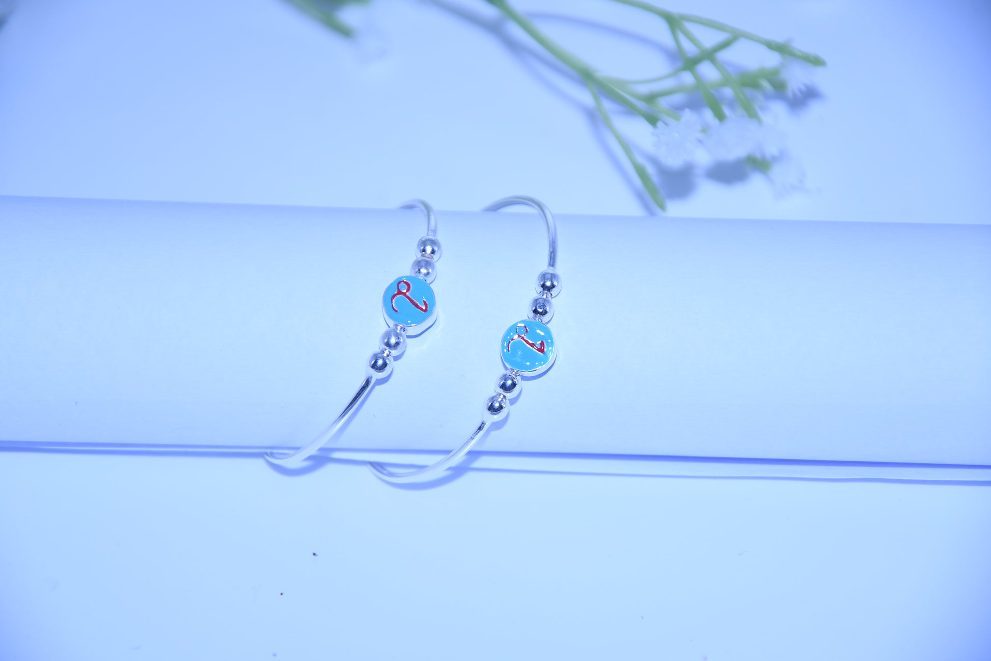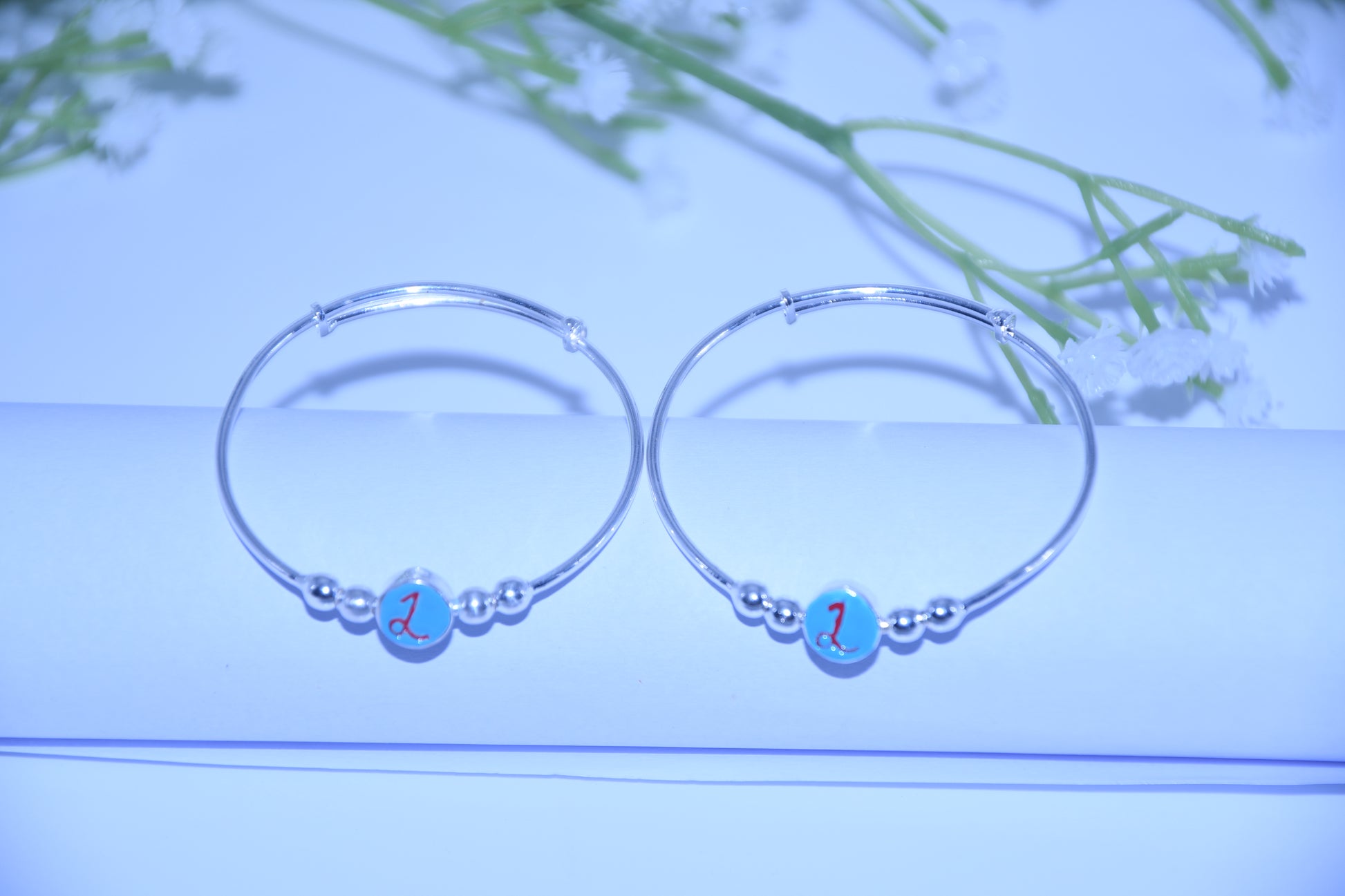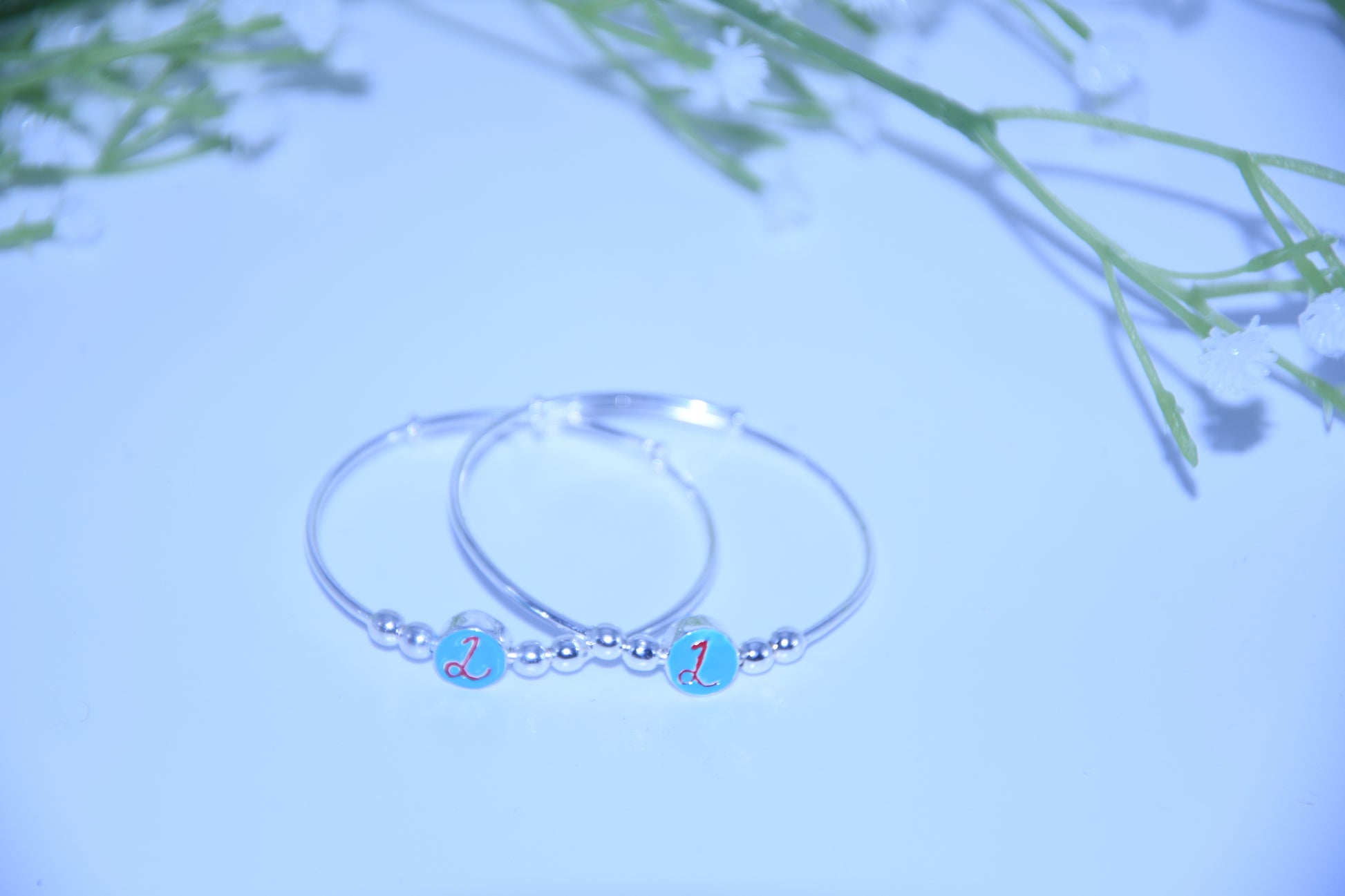 92.5 Silver Initial Blue ‘L’ Kadas (Pair of 2)