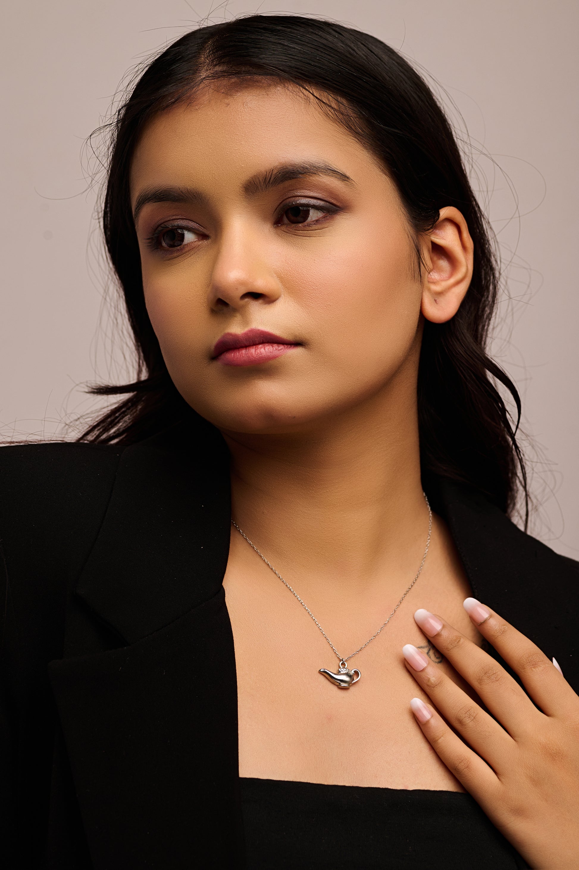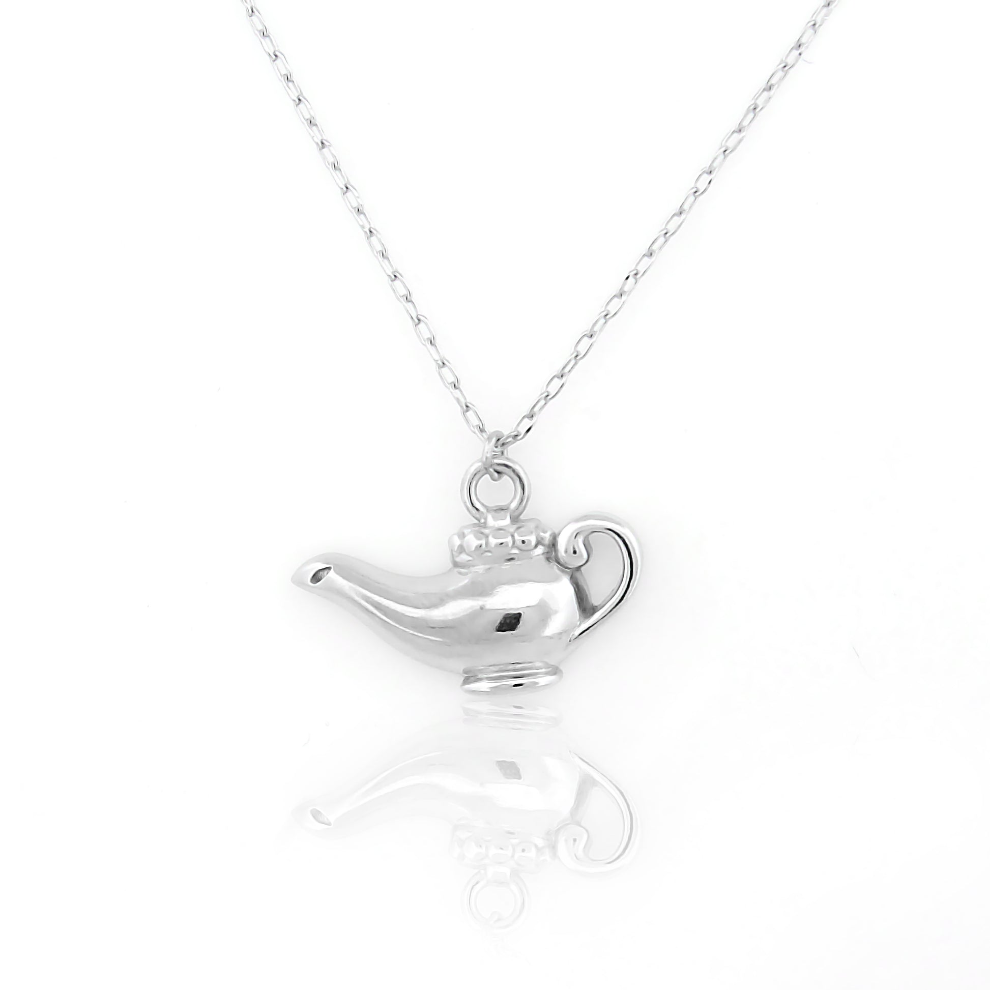 This silver-toned charm necklace brings a sense of fantasy and nostalgia with its miniature genie lamp motif. Whimsical yet grounded, it’s a playful piece that brings storytelling into style—a lovely way to carry your dreams, magic, and curiosity wherever you go.