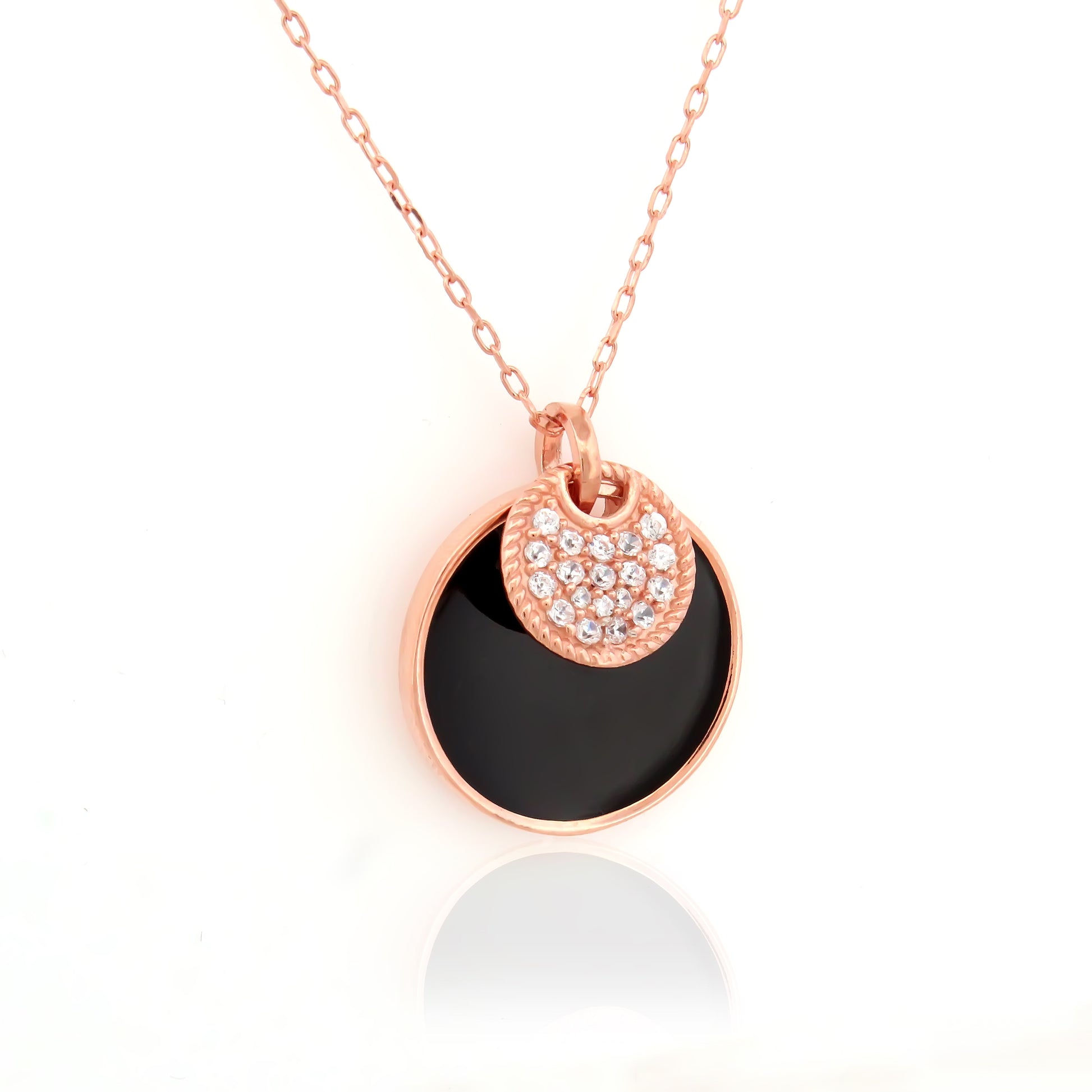 Bold, modern, and undeniably stylish — this necklace features a sleek black enamel disc paired with a shimmering charm, all suspended on a polished silver chain. The high-contrast design adds an edgy sophistication to your jewelry collection, effortlessly transitioning from day to night wear.