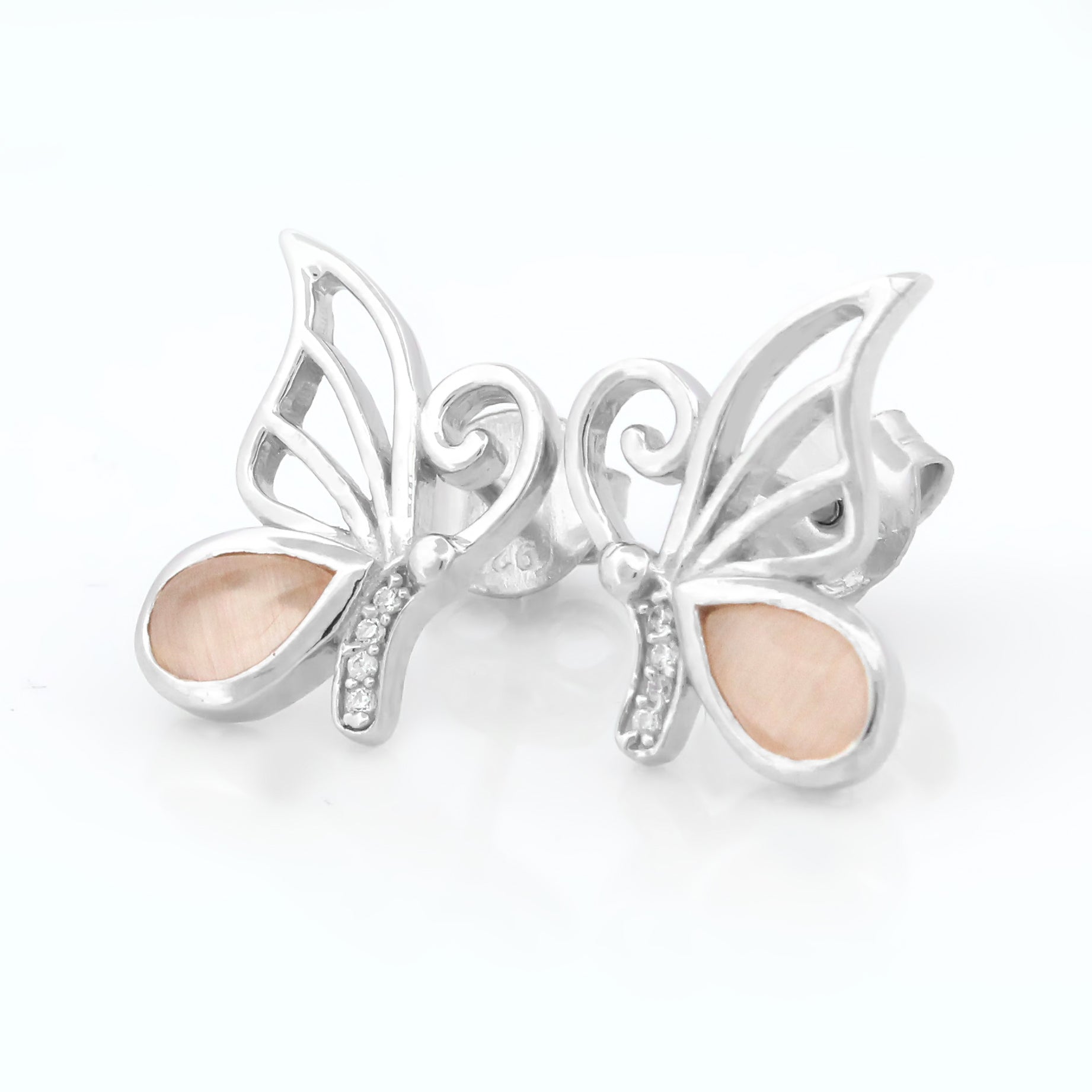 Delicate and graceful, these Elegant Butterfly Wing Earrings in silver are inspired by the soft flutter of butterfly wings. Featuring openwork silver wings and a teardrop-shaped center with a blush-toned stone, they add a touch of elegance and whimsy to any look. The subtle sparkle along the wing edge creates a dreamy, feminine finish that's both artistic and wearable.