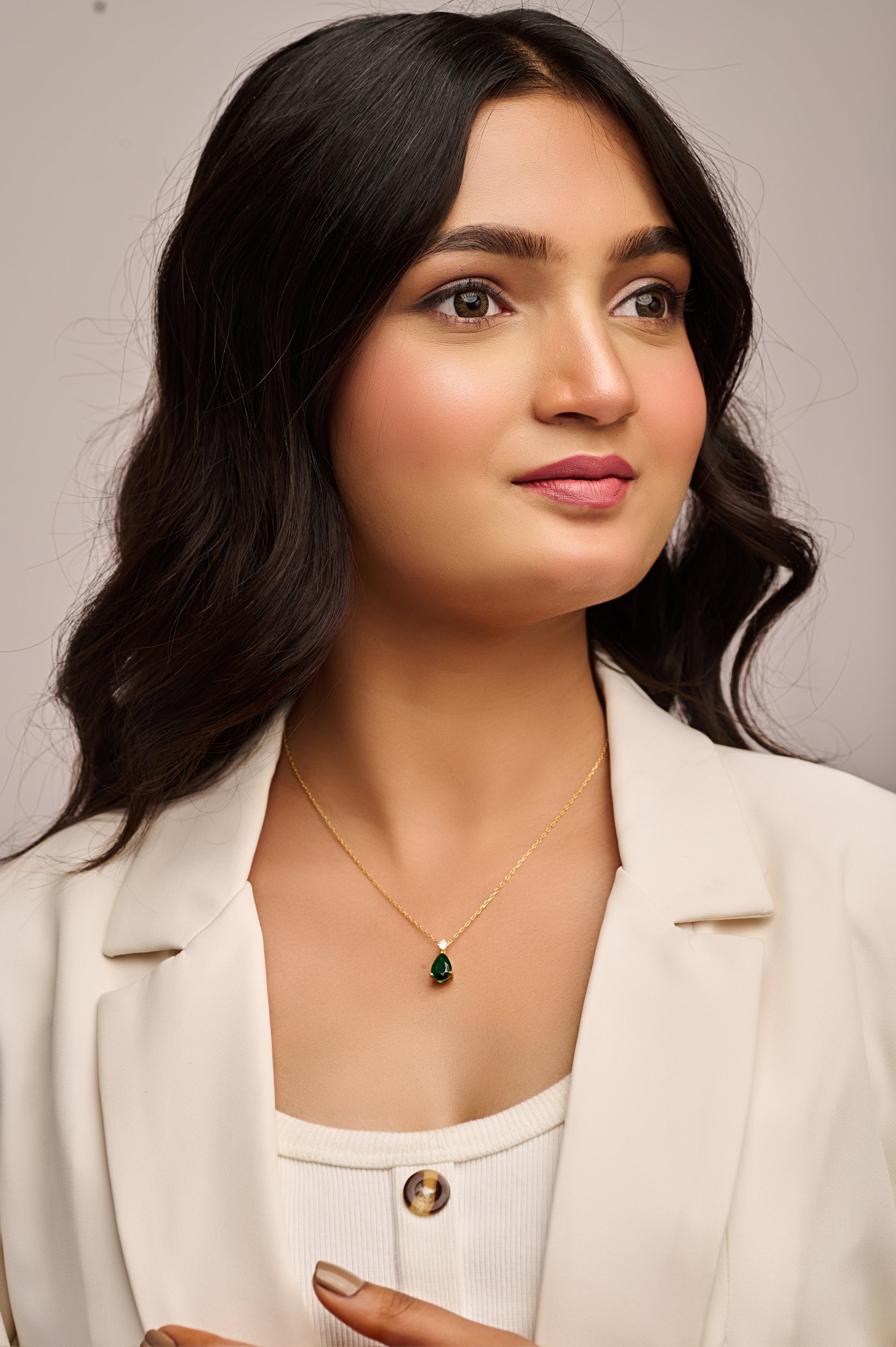 A tear-shaped green gem, glowing with earthy charm, framed in a graceful silver-toned setting. This piece channels nature, growth, and stillness. Whether you're at home or out, it brings a little grounding beauty to your day.