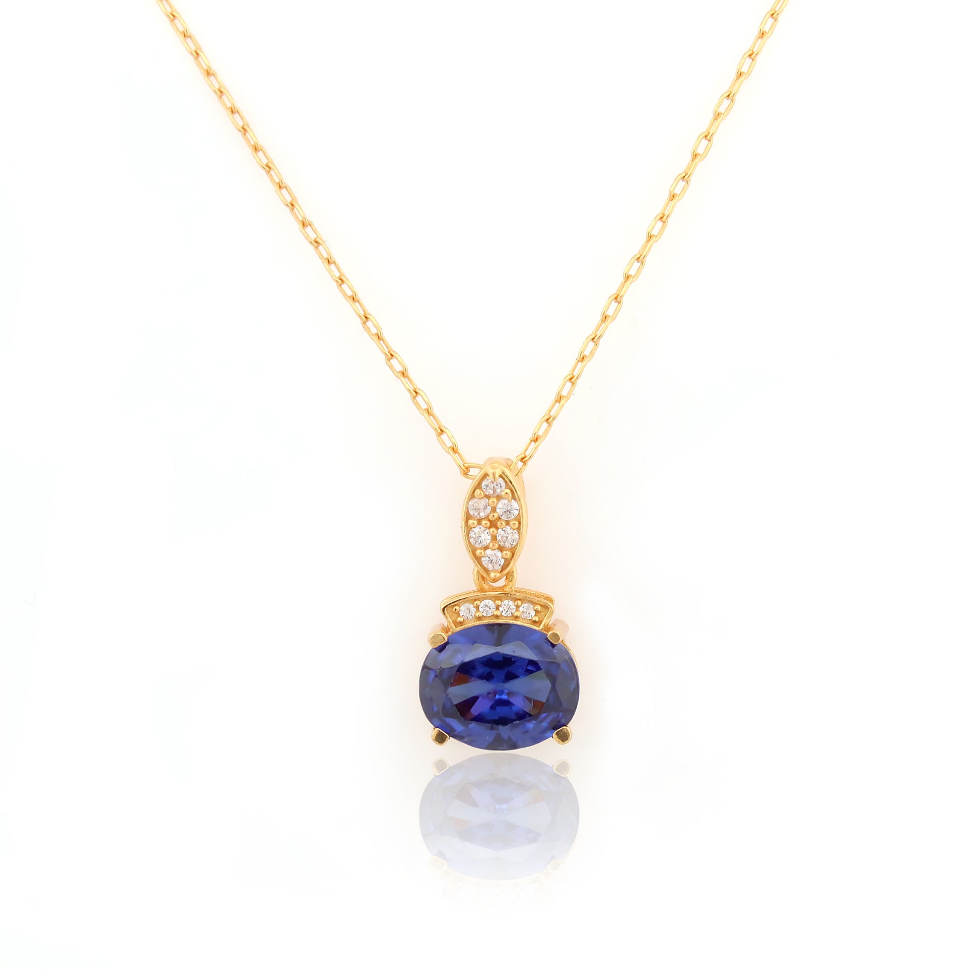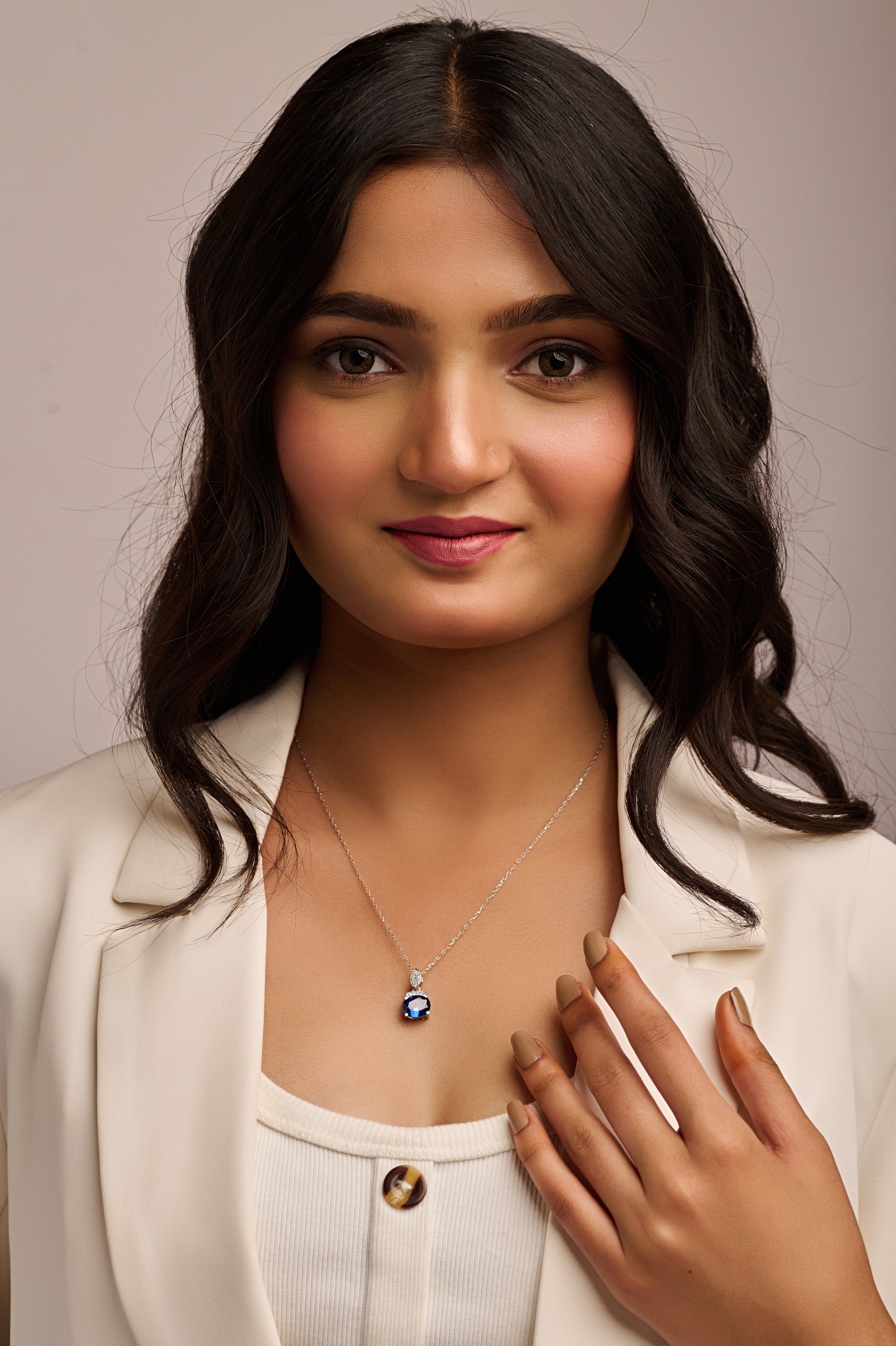 Oval Blue with Marquise Accent 92.5 Silver Pendant Chain