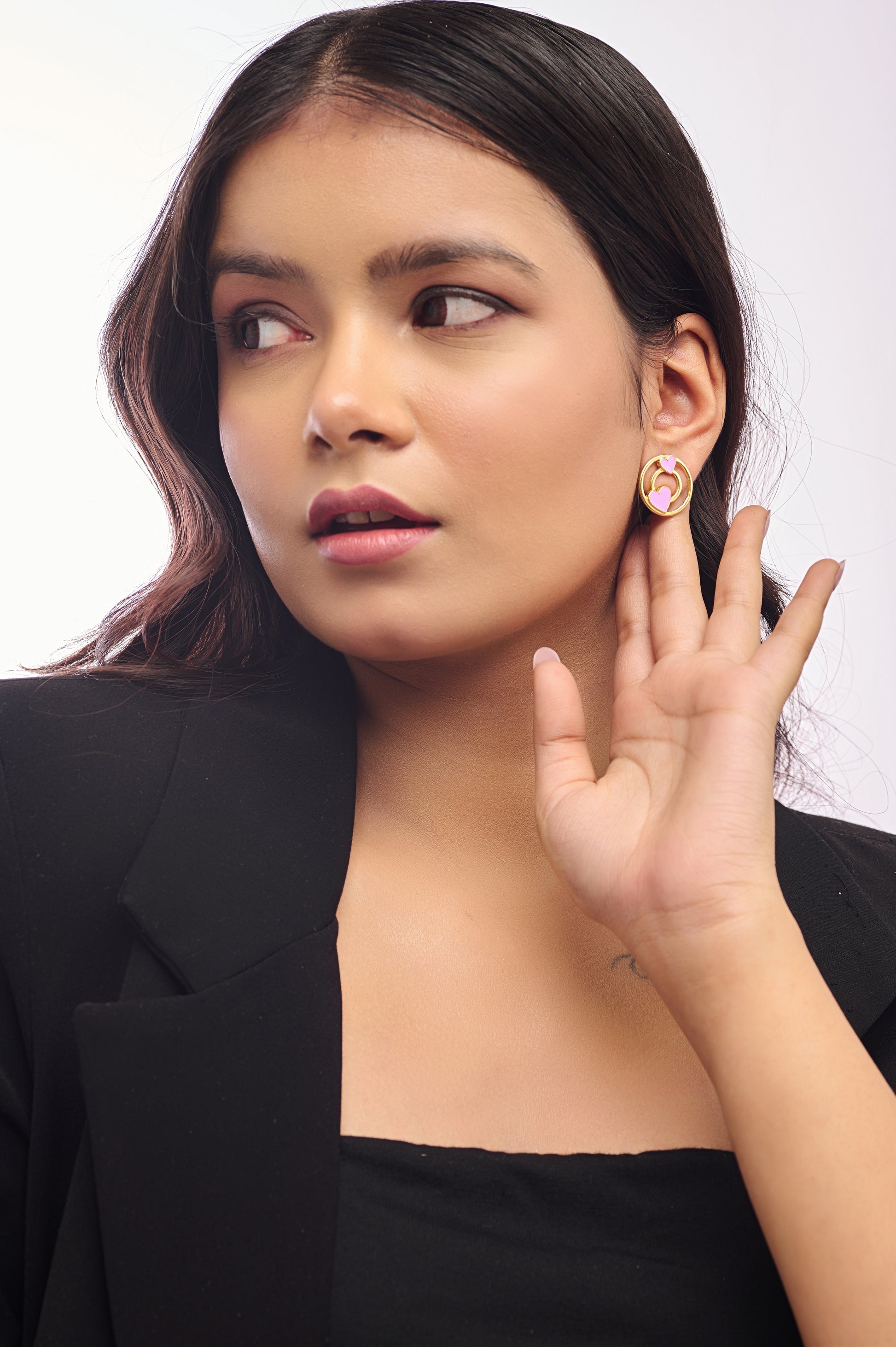 A cheerful and charming pair of studs featuring soft pink enamel hearts nestled within a modern silver frame. These earrings strike the perfect balance between playful and polished, making them an easy pick for everyday wear. Whether you're dressing up or down, they add just the right amount of sweetness.
