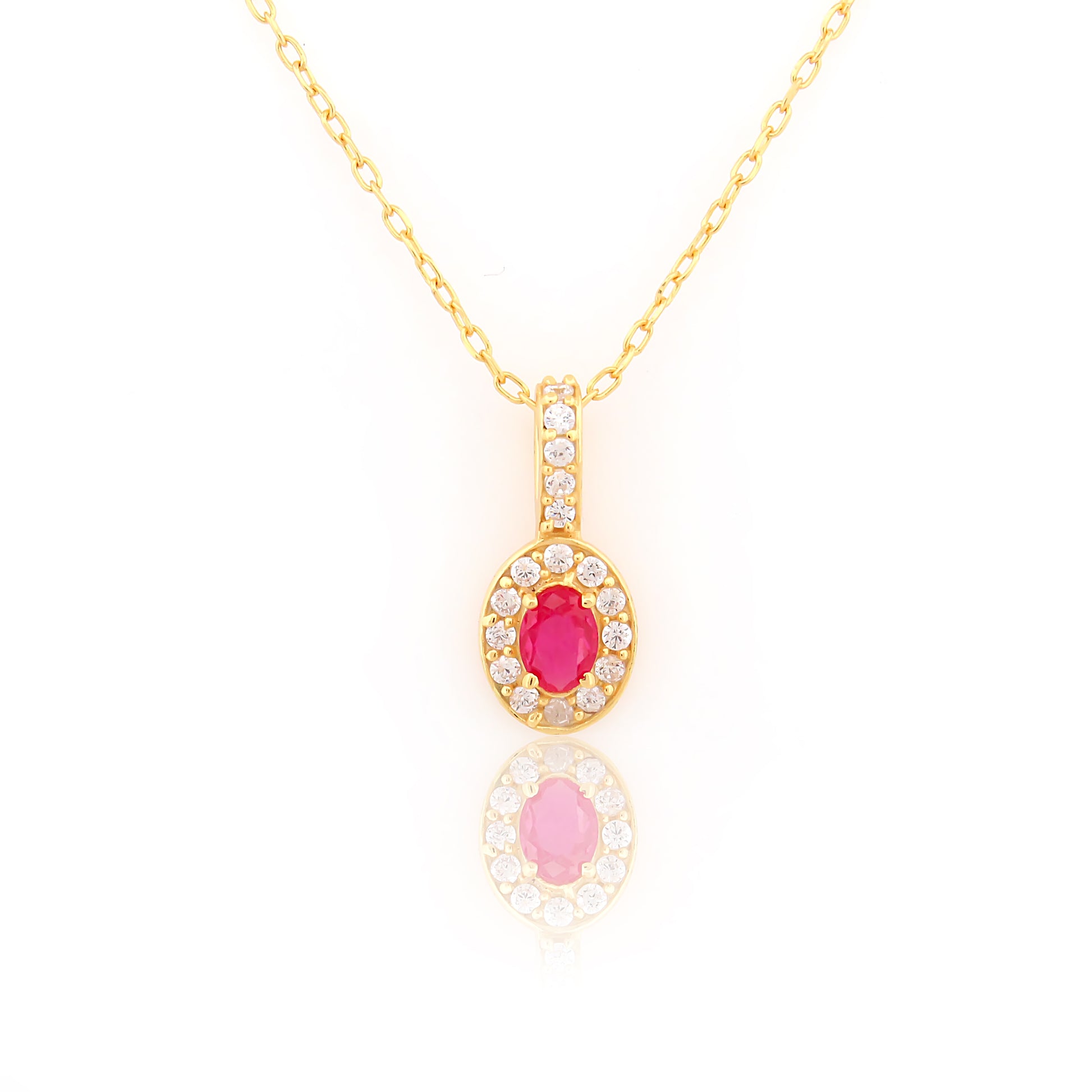 Pink Oval 92.5 Silver Pendant Chain