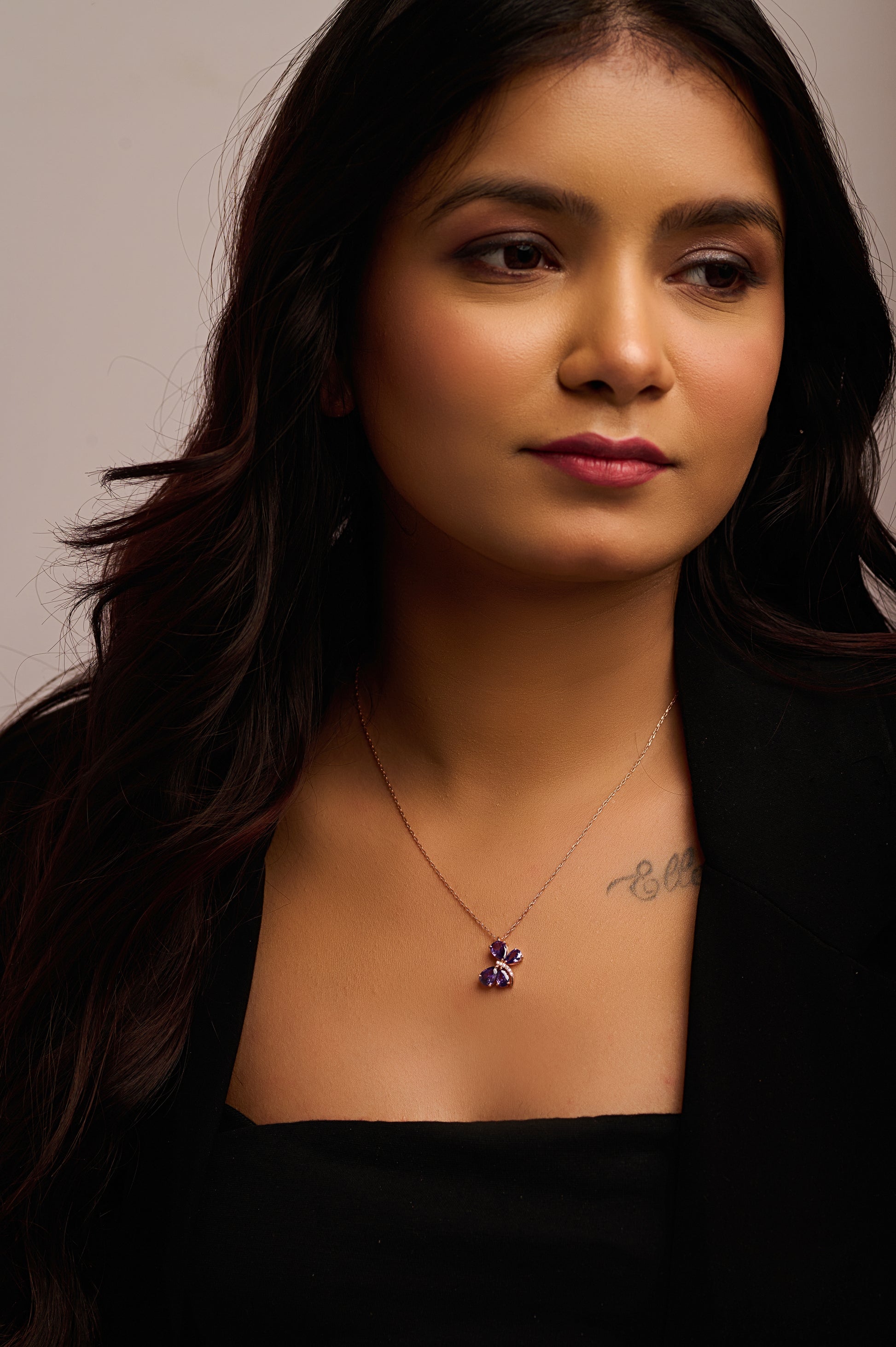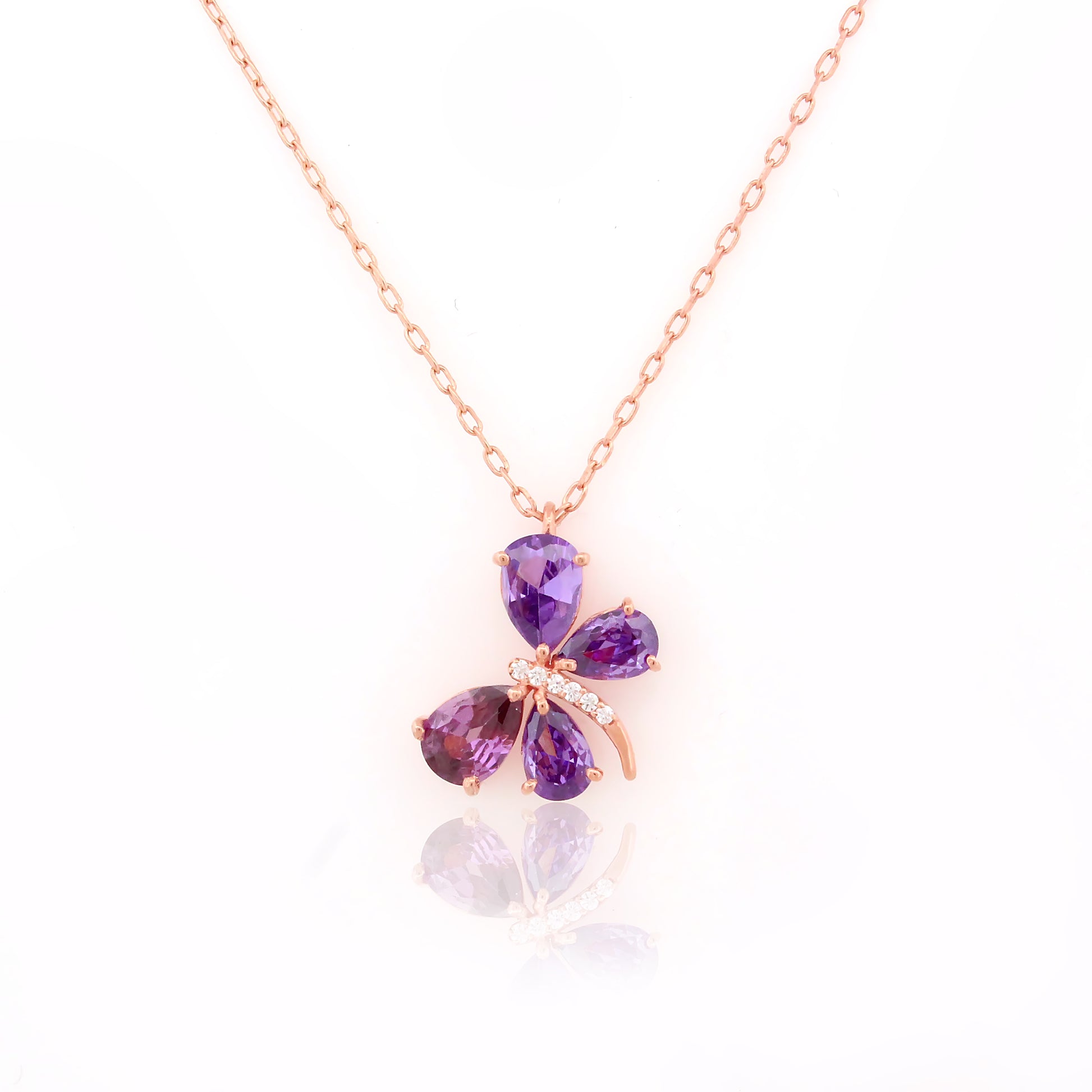 This enchanting butterfly pendant is crafted with delicate silver wings and adorned with soft purple stones, creating a dreamy fusion of nature and elegance. The fine details of the wings bring the design to life, offering a whimsical charm that feels light, feminine, and full of movement. Ideal for expressing joy, growth, and transformation.