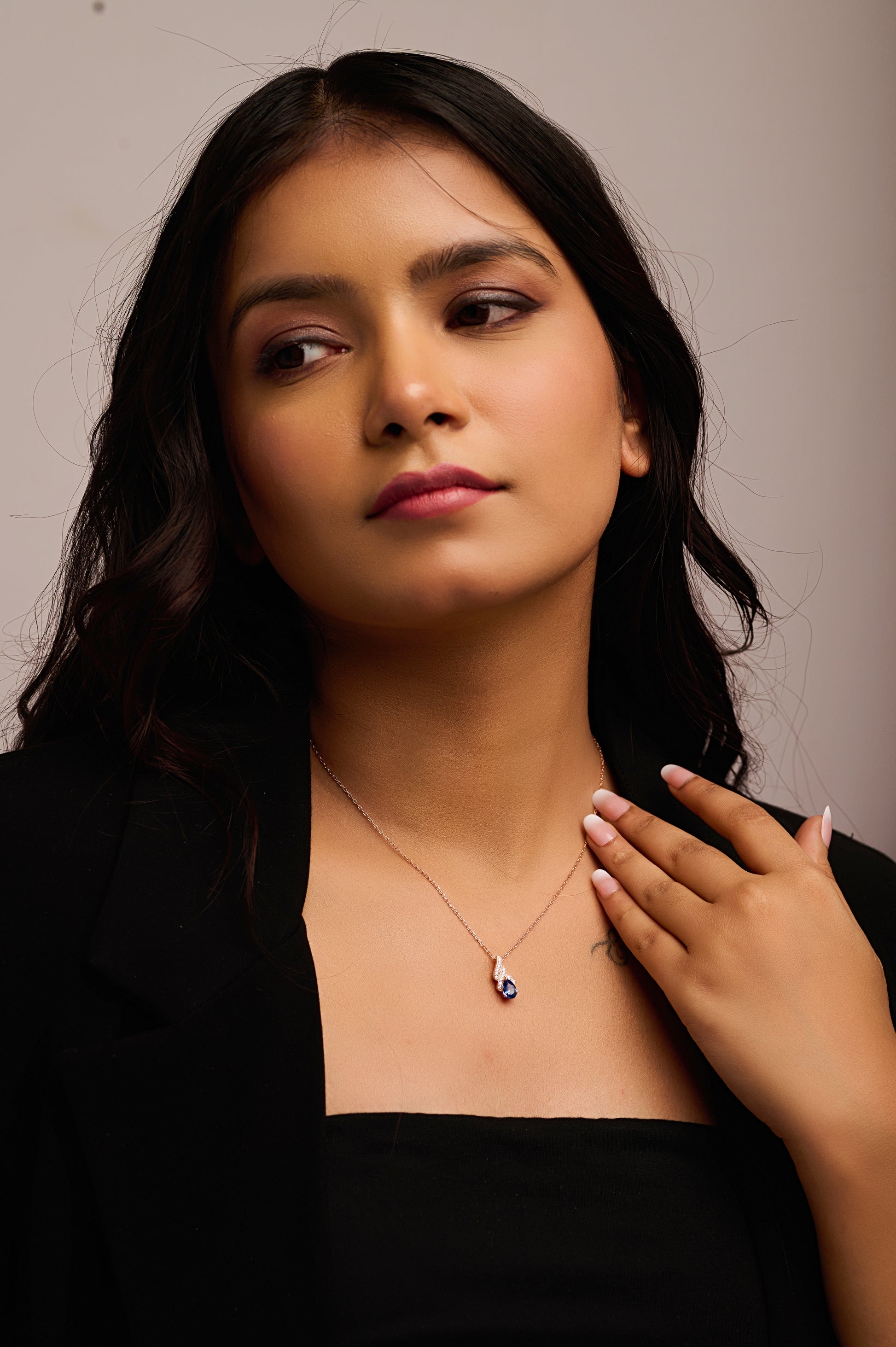 Royal Blue Teardrop 92.5 Silver Pendant Chain