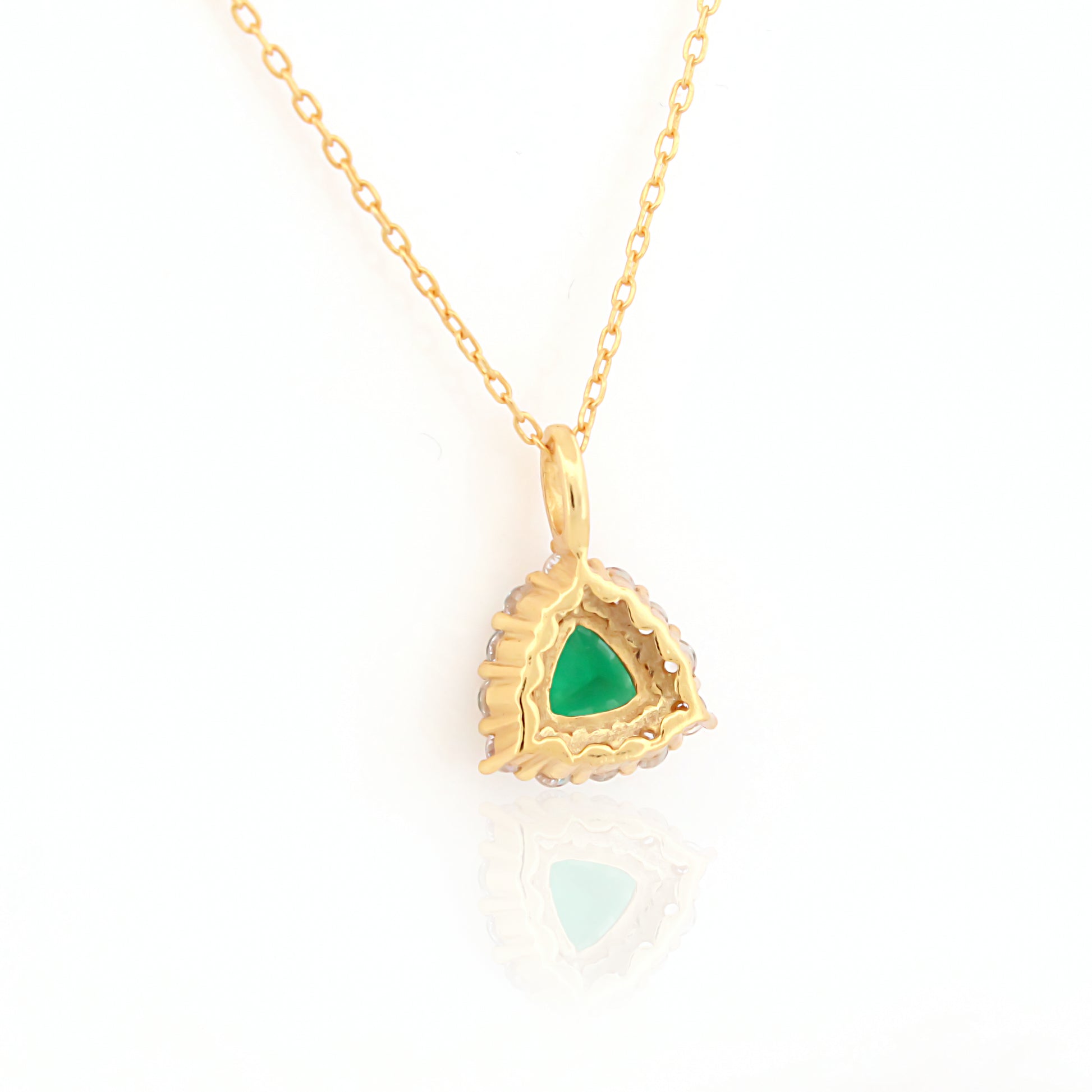 Triangle Halo Green Stone 92.5 Silver Pendant Chain