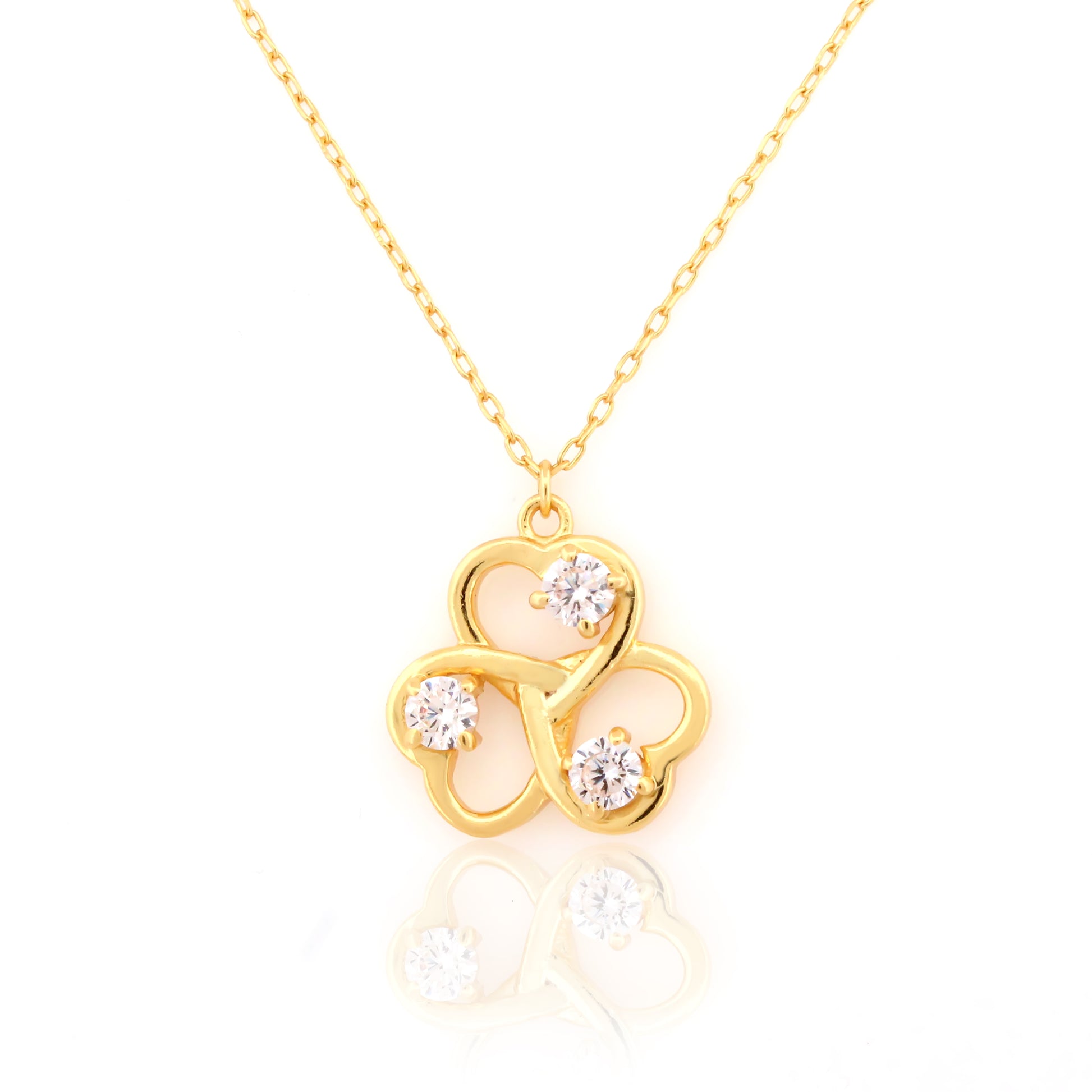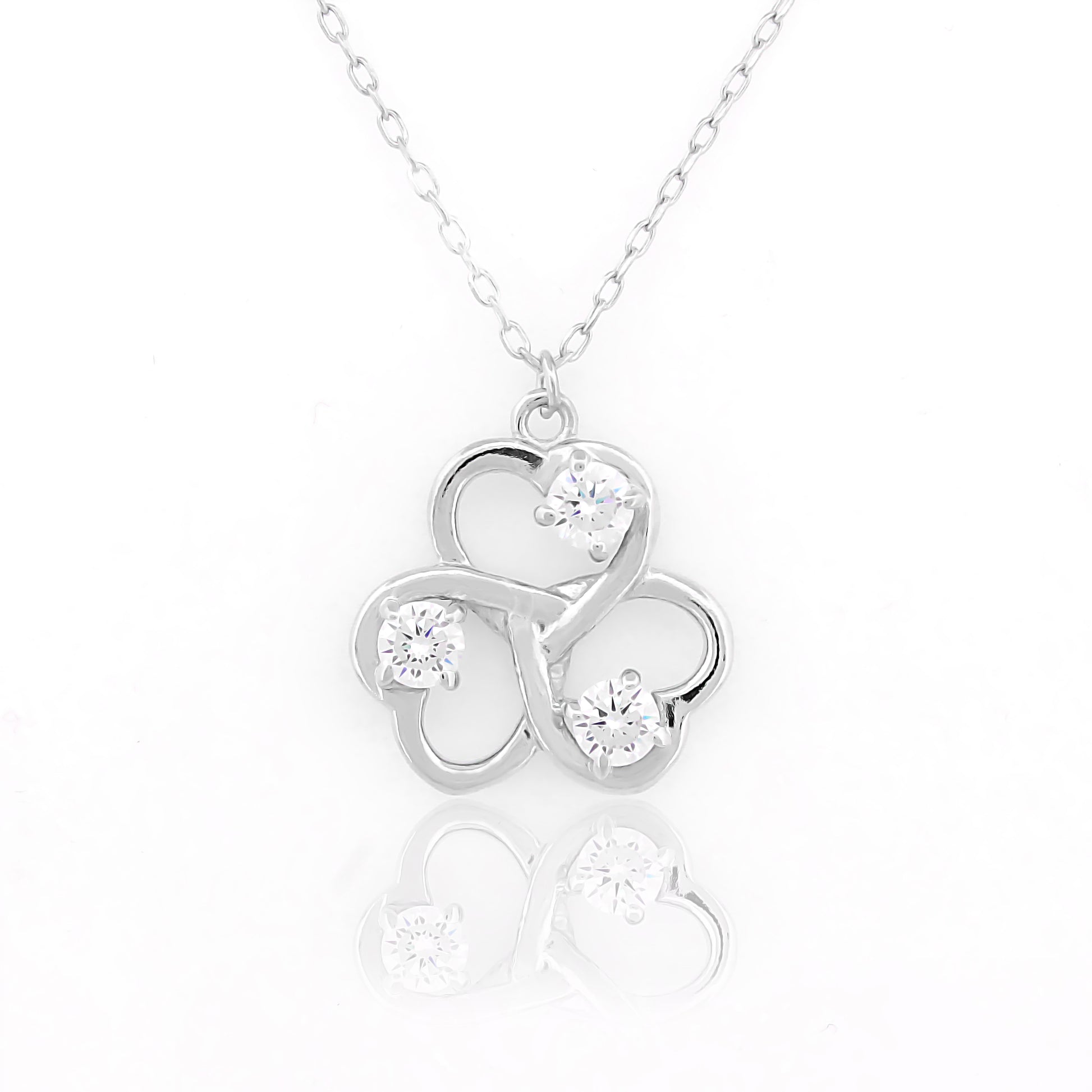 Elegant and timeless, this pendant showcases a trinity-inspired floral design, flowing smoothly in silver tones and enhanced with sparkling silver. Its symbolic balance and feminine curves make it a piece you can turn to for both structure and softness, every day or on a mindful occasion.